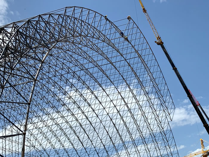 (2)网架加工前应对现场尺寸进行复测,确认无误后方可进行加工、安装;网架制作、运输、安装应遵守《空间网格结构技术规程》JGJ7-2010、《钢网架昌吉螺栓球节点》JG/T 10-2009、《钢网架昌吉螺栓球节点用高强度螺栓》 GB/T 16939-2016、《昌吉钢结构昌吉工程昌吉施工规范》 GB50755-2012、《昌吉钢结构昌吉工程施工质量验收标准》 GB50205-2020。